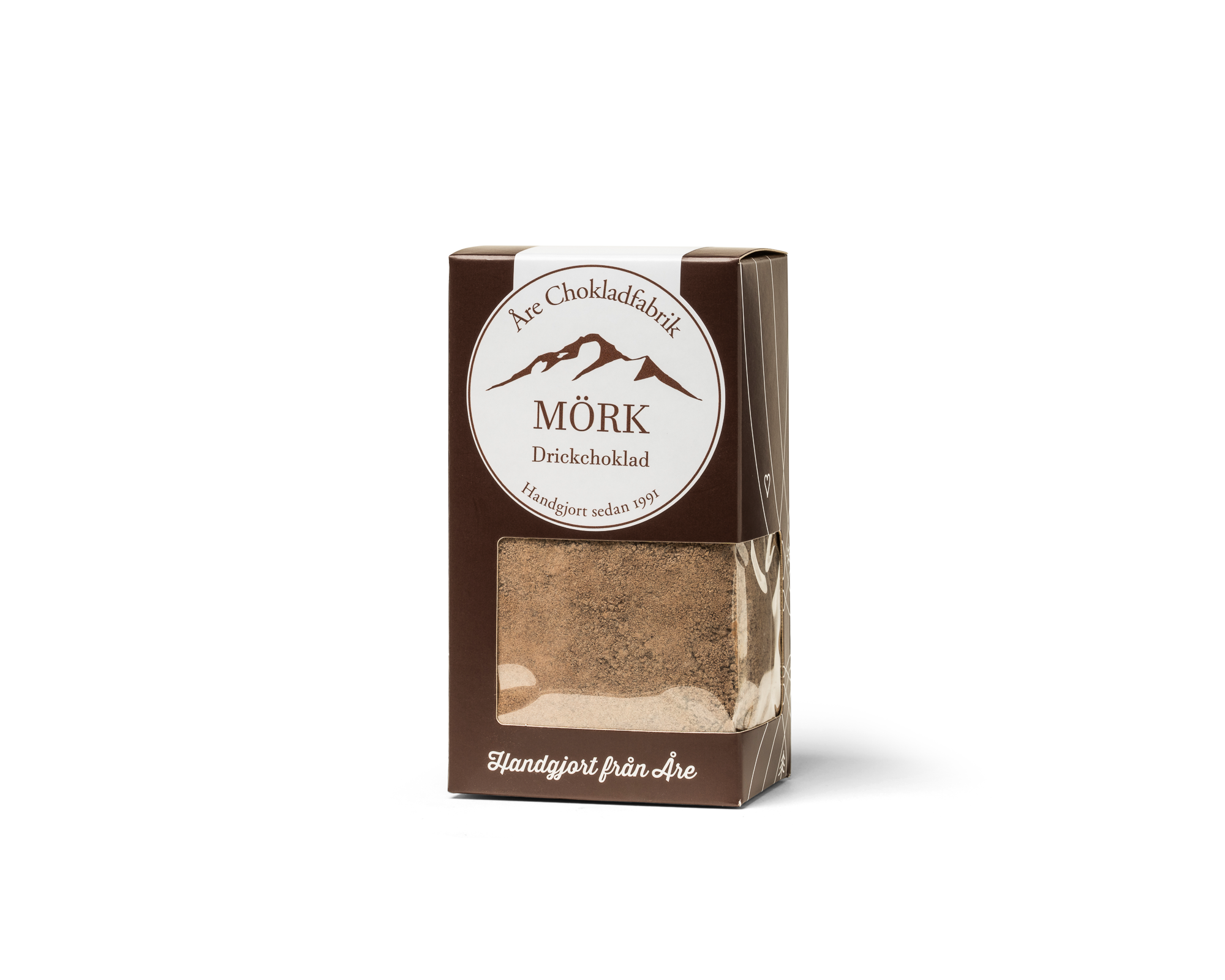 Ny snygg förpackning med utsökt och len mörk drickchoklad. Rör ihop hemma med varm mjölk. Mald och tillredd i vår fabrik i Åre.