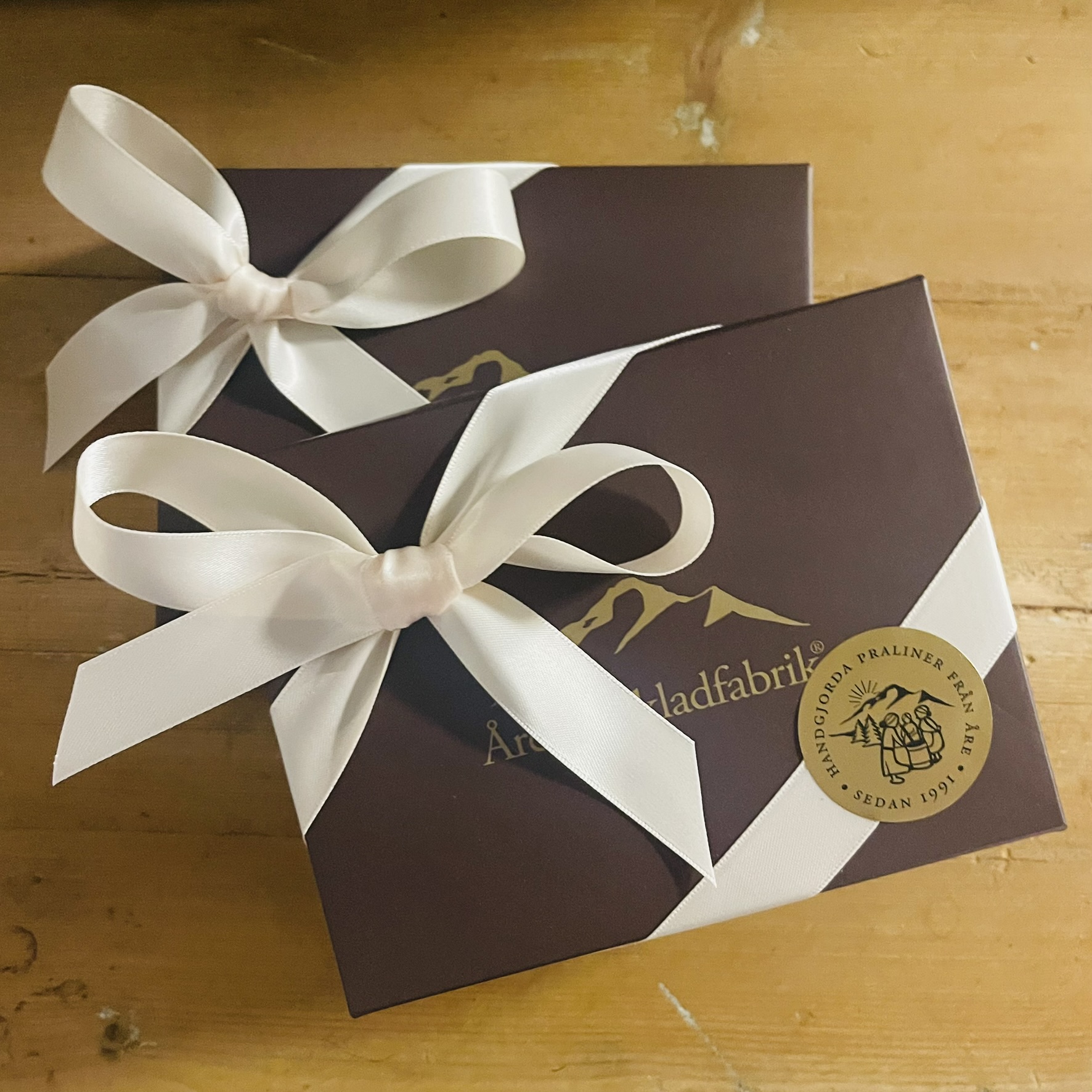 Då har vi en lite fin ask för dig med 6st handgjorda mjölkchokladkolor. Dela med någon du tycker om - eller varför inte ge bort till alla hjärtans dag! Obs! Ej brunt sidenband, nu vitt brett sidenband för extra lyxig förpackning.